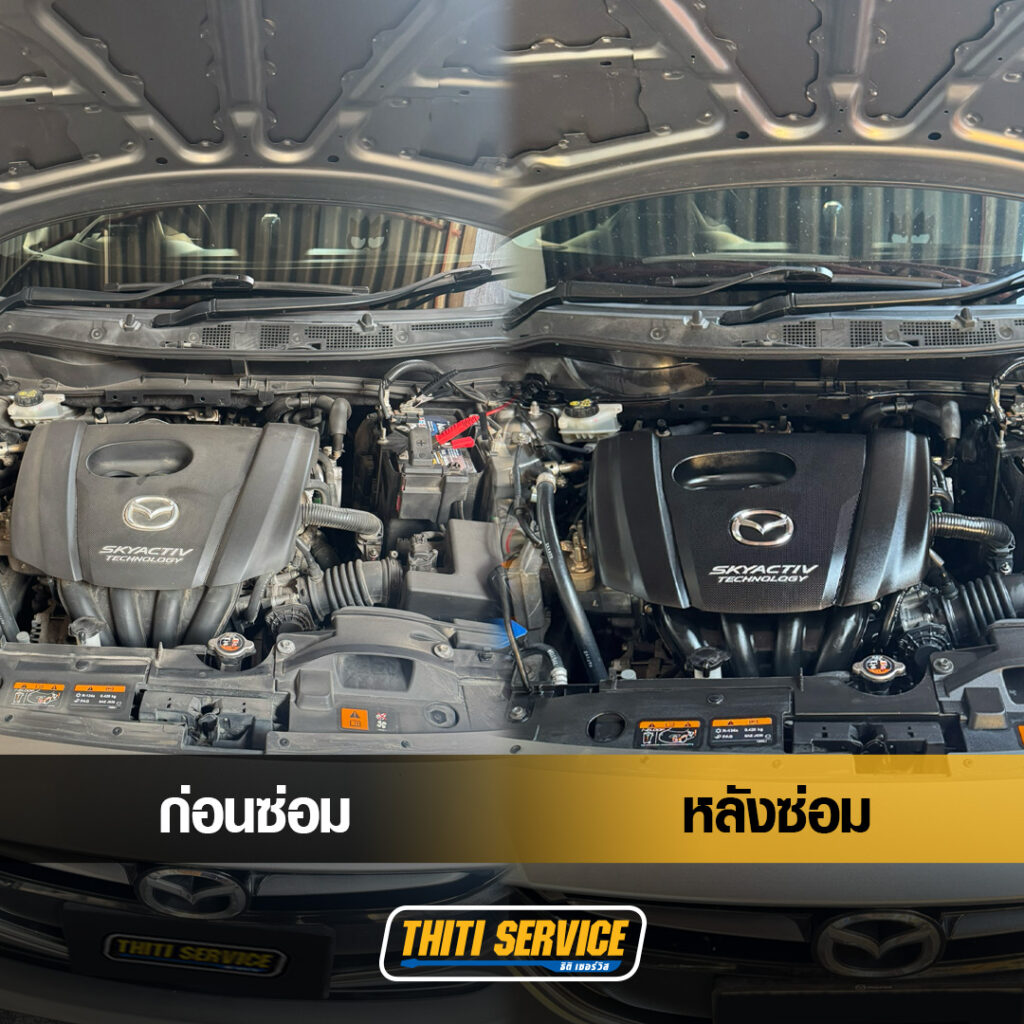 รถ Mazda 2 คันนี้กลับไปใช้งานได้ปกติ เครื่องยนต์เดินเรียบ ไม่มีการดับเองอัตโนมัติ หน้าปัดสะอาดไม่มีไฟเตือนกวนใจ ลูกค้าขับขี่ได้อย่างมั่นใจ ไม่ต้องกังวลเรื่องแบตเตอรี่เสื่อมไวอีกต่อไป