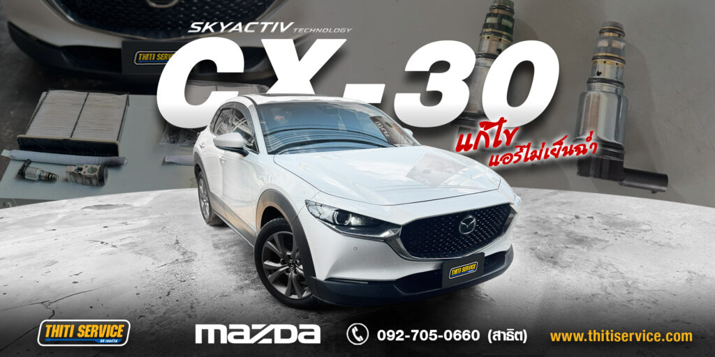 รถยนต์ Mazda CX-30 เป็นรถที่โดดเด่นเรื่องดีไซน์และเทคโนโลยี แต่เมื่อผ่านการใช้งานไประยะหนึ่ง ปัญหาที่พบได้บ่อยคือ “แอร์ไม่ฉ่ำ” หรือ “เย็นไม่สม่ำเสมอ” วันนี้ทาง อู่ Thiti Service กาญจนบุรี ได้รับเคส CX-30 ที่เข้ามาด้วยอาการแอร์เย็นไม่เต็มที่ ซึ่งจากการวิเคราะห์ด้วยเครื่องมือมาตรฐาน พบว่าปัญหาอยู่ที่ระบบทางเดินน้ำยาและการควบคุมแรงดันครับ