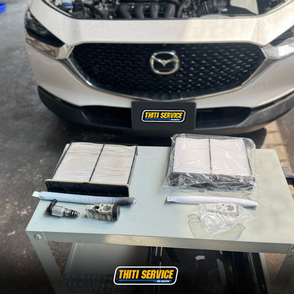 แก้ไขปัญหาแอร์ไม่เย็น Mazda CX-30 เปลี่ยนชุดวาล์วคอนโทรลระบบแอร์เต็มรูปแบบที่ Thiti Service กาญจนบุรี