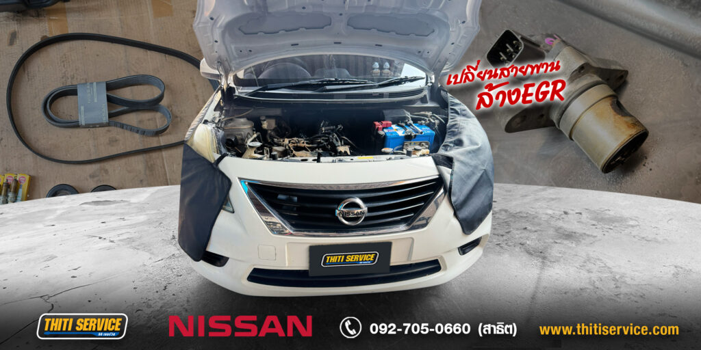 Nissan Almera ไฟเครื่องโชว์ เครื่องสั่น อืด แก้ไขจบที่ Thiti Service กาญจนบุรี Read More »